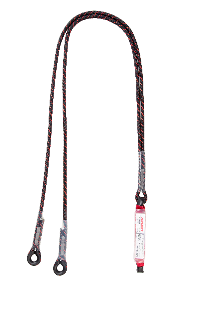 Double ABM 2L energy absorber with two fastening lanyards LB 11 - PA webbing and PA braided rope ø 10.5 mm / energy absorber size 160×35×45 mm / system length 1.6 m / possibility of connecting an optional carabiner (Txx - carabiner on damper, Lxx - carabiner on rope).