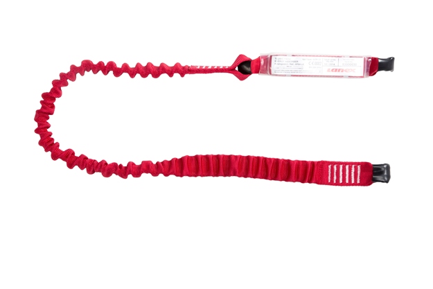 Elastic lanyard 1.5 m. An optional carabiner can be attached to the energy absorber and the end of the lanyard.