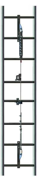 A movable fall arrestor on a fixed locking line, it prevents falls from heights for a person moving on a vertical ladder. The system is designed for mounting on all types of permanent access to structures, such as chimneys, towers, masts or buildings. The system is based on a rope clamp mounted on an 8 mm diameter steel rope and attached to the front attachment buckle of the safety harness.