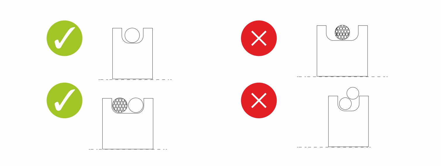 Always use the correct rope diameter. The size of the grooves in the machine must correspond to the diameters of the ropes used. The rope then fits correctly in the machine and works as it should.