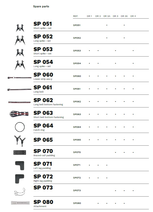 The set of spikes is supplied with 2 pairs of interchangeable tips made of hardened steel: