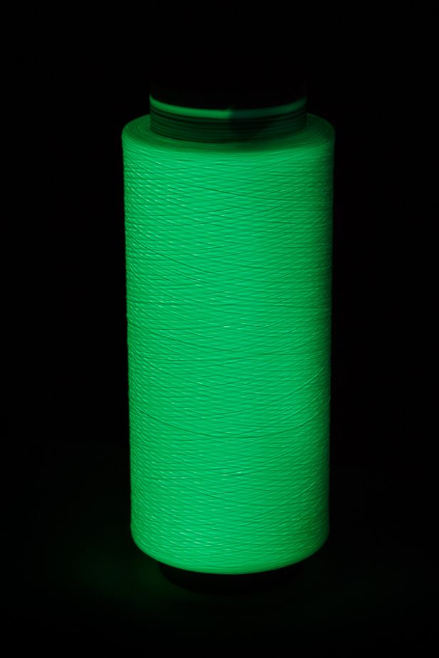 In addition to regular Multitex, we also produce LUMINOUS MULTITEX (colour 003 in the swatch book).  It is a  luminescent polypropylene multifilament yarn with a special additive that makes the material emit its own light  in the dark, so it is visible without  using any other light source. The yarn only needs to be exposed to natural or  artificial light for  "recharging", after which it glows for roughly another 5 hours.