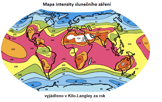 The intensity of UV radiation is variable and is proportional to the intensity of solar radiation in different geographical areas. We measure UV intensity in kLy (kilolengleys), units that express how much UV energy falls on one mm3 per year. A generalized map of areas by UV intensity.