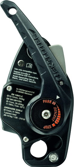 Fits in the hand perfectly. The handle is used to unblock the rope and control the speed of rappelling by pressing the free end of the rope with the hand and to adjust the working position on the rope without having to secure the brake by tying the rope. In addition, the handle has a small range of movement so the user can work quickly, accurately, efficiently and safely. The carabiner in the device always remains attached to the user or to the attachment point, as it does not need to be opened to insert the rope. Made of 100% metal without susceptible plastic parts.