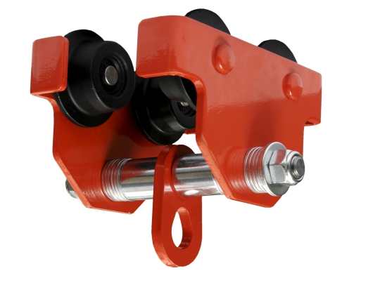 Safety trolley for secure movement on steel beams 65-120 mm. The material is galvanized steel or steel with a protective coating.